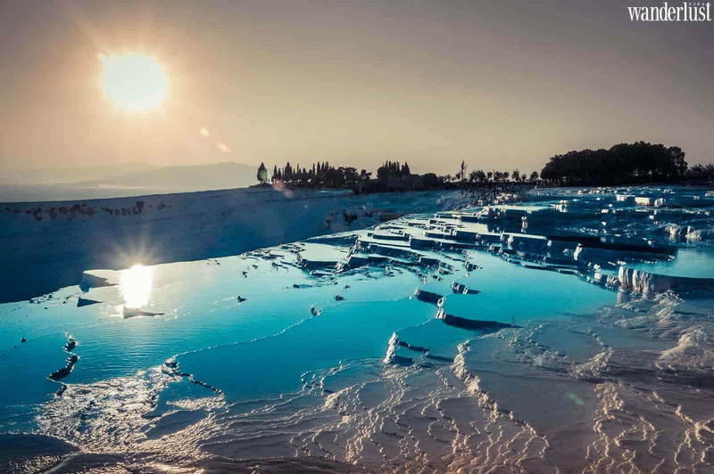 “Lâu đài bông” Pamukkale: kỳ quan thiên nhiên thứ 8 của thế giới. Mang vẻ đẹp tráng lệ, cổ kính và giàu giá trị lịch sử. Tuy không phải là một lâu đài thật sự, nhưng với vẻ lộng lẫy và trắng xốp như một ngọn núi tuyết, cộng thêm có những dòng suối khoáng nóng chảy lộ thiên từ hàng ngàn năm trước, Pamukkale hiện lên như một kỳ quan thiên nhiên vô cùng kỳ vĩ và độc đáo.