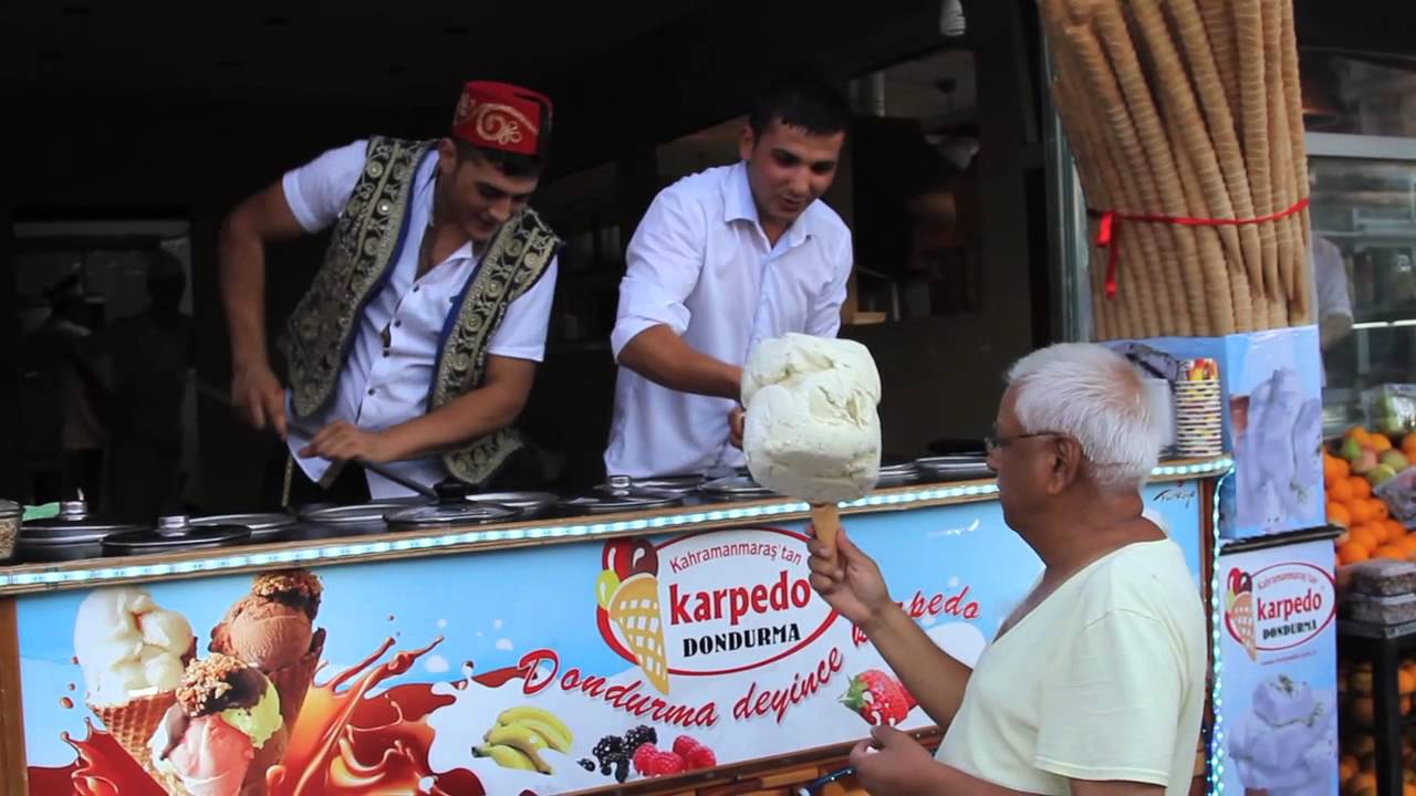 Kem Thổ Nhĩ Kỳ làm từ bột của rễ cây Orchis mascula nên kem Maraş Dondurma rất lâu tan và nhìn dày dặn hơn so với các dòng kem khác. Chính vì vậy, khi thưởng thức loại kem này, bạn sẽ phải nhai kỹ nhiều lần để có thể làm mềm kem. Khi mua món kem Maras Dondurma trên đường phố Thổ Nhĩ Kỳ, bạn sẽ được trải nghiệm không chỉ hương vị của món kem mà còn thêm cả phần trình diễn điêu luyện, rất vui mắt của người bán hàng.