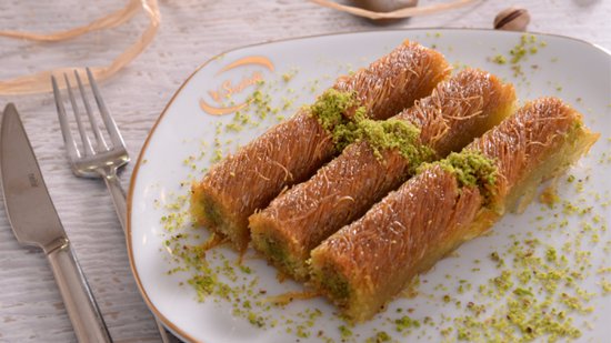 Bánh Kadayif ăn kèm với quả hồ trăn nghiền nhỏ - Ảnh: Sưu tầm
