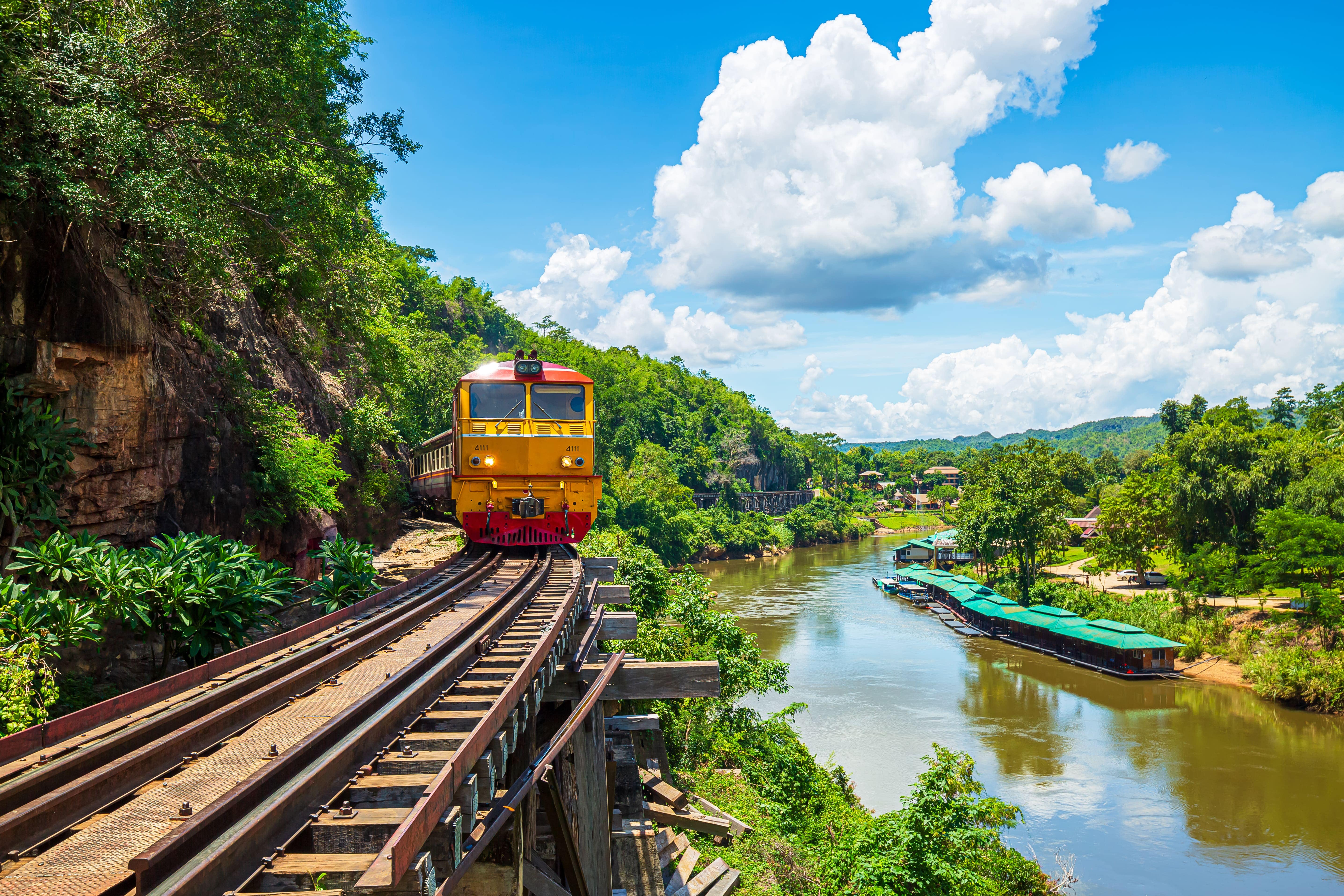 Cầu sắt sông Kwai và tuyến đường sắt tử thần là di tích lịch sử quan trọng ở Kanchanaburi, kể lại giai đoạn khốc liệt của Thế chiến II. Hôm nay, cây cầu không chỉ là biểu tượng của ký ức mà còn là lời nhắc về sức sống và sự hồi sinh. Du khách đến đây có thể đi tàu trên đoạn đường sắt cổ, trải nghiệm cảm giác vừa hoài niệm, vừa tự hào về sức mạnh của con người trước nghịch cảnh.