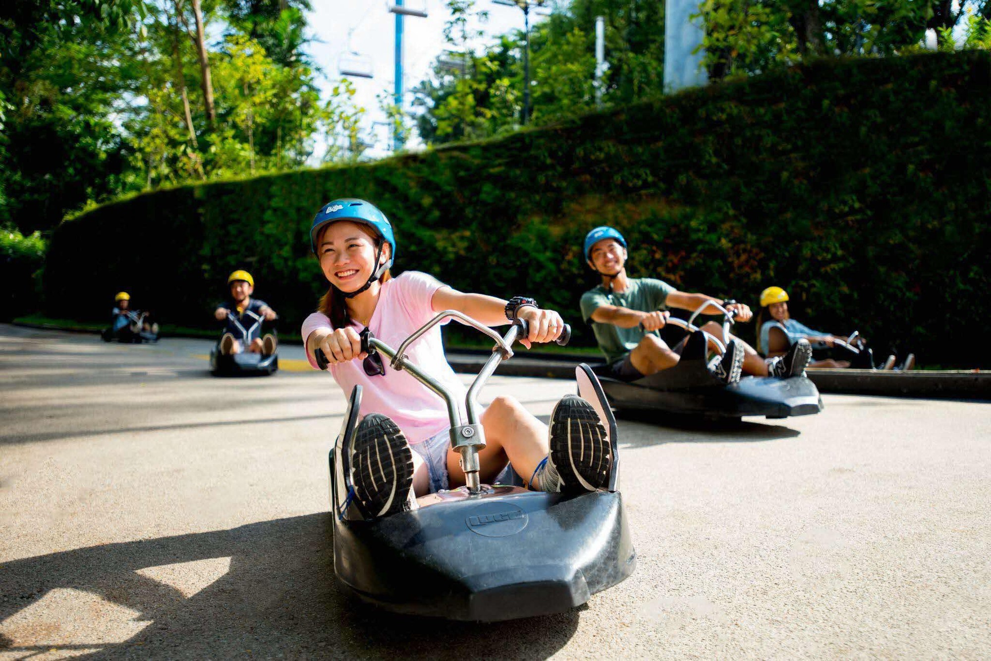 Nếu bạn là người ưa mạo hiểm, yêu thích trải nghiệm cảm giác mạnh thì đừng bỏ lỡ cơ hội tham gia Skyline Luge ở Sentosa. Bạn sẽ được tận hưởng cảm giác sảng khoái khi lao như bay trên đường trượt lộng gió, hay hưng phấn tột độ khi chinh phục những góc cua hiểm hóc trên đường đua cùng người bạn đồng hành là chiếc xe trượt Luge, không động cơ, trông nhỏ nhắn và khá lạ mắt.
